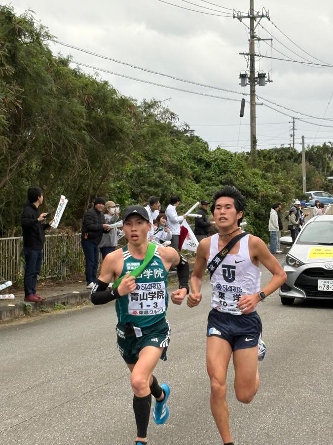 青学がじゅにを上東洋と先頭争いで4区へ繋いでいきました!