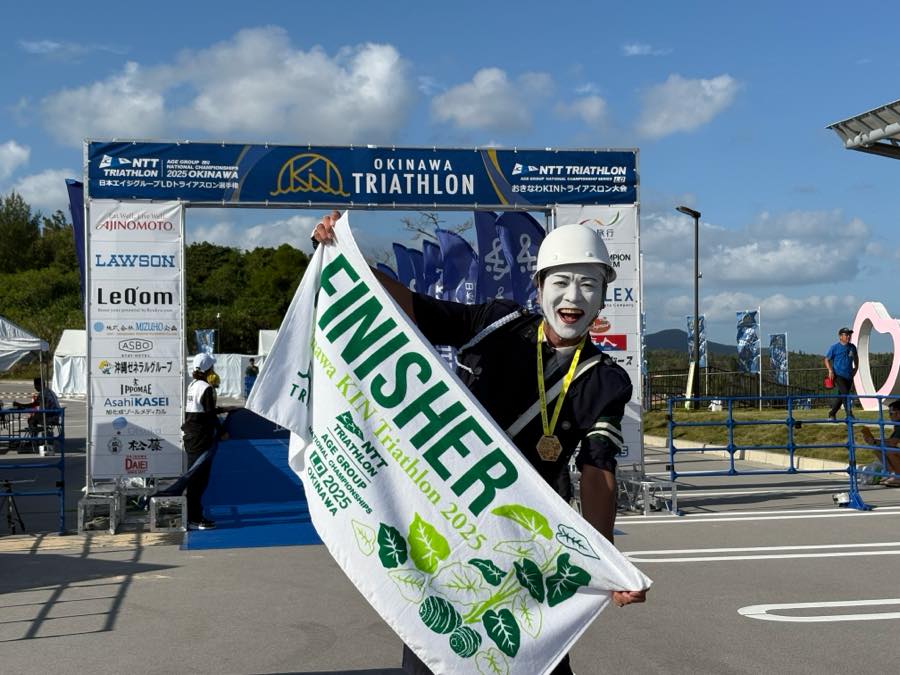 台風も直前まで沖縄にあった関係で海はうねりや波も高くスイムが苦手な私は大苦戦!!バイク、ランについても、坂が多く大苦戦と、全体的に大苦戦な大会でございましたが無事完走することができました。